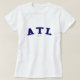 Verifique para fora este t-shirt de ATL! É você de Atlanta, Geórgia? Você tem um amigo ou um membro da família que amem Atlanta, Geórgia? Em caso afirmativo, este t-shirt da "bandeira" é exatamente o presente que você está procurando! As características de design "ATL" na rotulação arqueada do marinho na pia batismal clássica da faculdade.