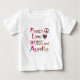 Compartilhe o amor pela tia com esta design colorida com um sinal de paz, coração, e as palavras Abraços e tia de Amor pela Paz.