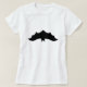 Um simples morcego pendurado de cabeça para baixo decora esta camisa.