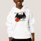 As crianças jovens adoram enigmas e Piadas de toco quase tanto quanto amam o Dia das Bruxas. Este legal capuz reúne os dois para diversão diurna ou fantasias de última hora. Apresentados são IconDoÉ uma placa gráfica digital original que inclui um grande morcego preto com olhos verdes assustadores, um malicioso Jack O'Lantern e uma grande aranha preta em sua teia pegajosa. Legenda "Knock! Bata! Quem está aí? Boo! Quem? Não chore!"