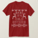 Um bebê é expressão exterior fria do Natal no design de confecção de malhas do estilo da forma da camisola feia do Natal em vermelho e em branco.