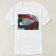 Um ponto baixo e um tiro próximo do lado de um Bel Air vermelho e branco clássico de Chevy da parte traseira, capturando essa aleta surpreendente!