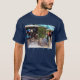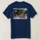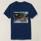 Nesta camiseta - Casual, relaxado, andando ao redor de bicicletas, estas são algumas das coisas que compõem o confortável estilo de vida ilustrado nesta fotografia original por ZoeSPEAK de uma bicicleta azul aqua inclinada contra um posto em frente a um bar ao ar livre em Key West, na Flórida. Há um arbusto verde folheado numa banheira, debaixo de um aviso que corresponde à cor da bicicleta. O interior escuro do lugar está cheio de fezes bares de madeira, e guarda-chuvas azul de aqua e cobalto sobre as mesas. Um bar azul aqua na frente completa a foto colorida.