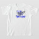 Uma camisa de irmão mais velho. Palavras azuis de irmão mais velho com um dragão de cinza ao fundo. Vai com a irmã mais nova e a camisa da irmã mais velha.