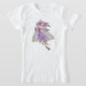Uma fada bonita das glicínias em máscaras macias do roxo com as asas arco-íris-coloridas da libélula flutua graciosa neste t-shirt. As cores bonitas, as linhas de fluxo, e os detalhes finos fazem a esta imagem da fantasia um destaque. Fácil personalizar com o produto de Zazzle que edita a ferramenta. Clique sobre "personalizam-no!" abotoe para obter começado. dançarino www.AuroraWings.com do ©Mitzi Sato-Wiuff/Aruarian