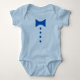 Esta camisa engraçada de bebê para meninos apresenta um gráfico de gravata azul de arco e quatro botões azuis.