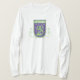 A brasão finlandesa recreada para o dia do St. Urho em roxo e em verde, com um pitchfork, um halo, uns gafanhotos e umas uvas.