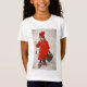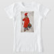 A filha de Carl Larsson segurando velas e maçãs. Brita está vestindo um vestido vermelho de Natal e um chapéu