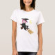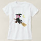 Uma bruxa de cabelos cor-de-rosa voando na vassoura com o gatinho!