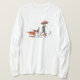 A caminhada feliz, menina está tomando o bloco dos cães para uma caminhada sob a chuva. Design longo do t-shirt das capas da mulher.