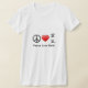 Os símbolos da paz, do amor, e do Reiki uniram-se em uma camisa.
