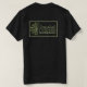 Na frente, uma camuflagem de folha/agulha fractal castanha e verde adequada para as florestas de coníferas ou de folha caduca. Adicione seu próprio texto. Na parte de trás está o logotipo do mítico desenvolvedor de Sistemas Fractais Camouflage deste e de outros padrões de camuflagem.