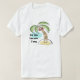 Camiseta branca básica de homens com uma imagem de desenho animado de uma ilha deserta com palmeira, cocos, e mar azul profundo. "I’m On Island Time" é impresso na frente em letras negros e ilhotas. Veja toda a coleção de Roupa de naufrágio nos TOUCHES ESPECIAIS | Seção Favoritos para festas.