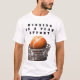 T-shirts com um design de uma bola de cesto, a cesta de Dentro de bola com uma frase acima que diz: "Ganhar é um esforço de equipe"