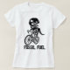 Fóssil de dinossauro engraçado que monta uma bicicleta.