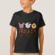 O design da camisa que caracteriza uma cara do porco, da vaca e da galinha dos desenhos animados com as palavras "amigos, não comida" imprimiu abaixo. Presente perfeito para os vegans e os vegetarianos em sua vida, ou para qualquer um que apoia um estilo de vida compassivo, não-violento. Livre para mudar a cor do fundo. Paz.