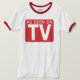 T-shirt vermelho & branco da campainha com como visto no ícone da tevê na parte dianteira