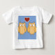 design de duas corujas em pé junto com um coração vermelho de amor entre elas em um fundo azul-céu. Design de desenho animado bonito e peculiar inspirado pelo amor e amizade.