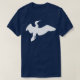 O t-shirt gráfico legal que caracteriza um pássaro branco do cormorant mostra em silhueta em vôo.