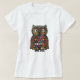 Parte superior do Tshirt com uma ilustração bonito da coruja da colagem dos retalhos feita das fotografias individuais das flores, dos animais, das paisagens, do pôr do sol e ainda da vida.