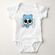 Crânio de bebê bonito e ossos cruzados com chapéu azul e pacificador.