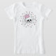 Crânio de princesa bonita e ossos cruzados cercados por estrelas em tons de rosa.