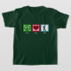 Um golfista ao lado de um coração e um sinal de paz em uma camiseta de golfe para crianças bonitas. Golfe do Amor pela Paz.