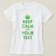 Customizável mantenha calmo e continue o t-shirt da paródia. Faça seus próprios manter a calma e continuar a paródia pela escrita seu texto no modelo.