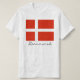 A bandeira nacional da Dinamarca, Dannebrog, é vermelha com uma cruz escandinava branca que se estende até às bordas da bandeira.