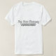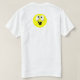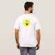 O texto é uma imagem, branca, esboçada em preto, e assim será bem visível em qualquer cor. "Não sou desajeitado. Eu apenas experimentei turnos periódicos em meus estabilizadores gravitacionais."... Que foi o que eu disse a um colega de trabalho depois de ter tropeçado na minha sombra pela segunda vez em apenas alguns minutos. O rosto no verso é uma colagem de olhos, uma imagem de ponto e um texto "u" para o sorriso. Isso pode ser excluído se você preferencialmente a camisa dessa maneira (o que também fará a camisa um pouco mais barata).