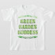 Deusa do Jardim Verde dizendo em letras decoradas e vítreas em tons de verde e amarelo. Pelas GardenPages.