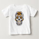 Uma bela imagem gótica de um crânio mexicano com flores decoradas no dia do estilo morto. Isso é definido em relação a um fundo de cor personalizável.