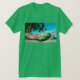 Camiseta básica da Canvas Bella verde-cinzenta, de cor cinzenta, de cor cinzenta, verde-cinzenta, com uma imagem de extremo realismo, pintada a aquarelas de uma iguana verde perfeitamente reclinada ao sol tropical. Veja toda a coleção de Roupa da Nature & Wildlife na seção ROUPA.