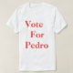 T-shirt branco com a rotulação vermelha que simboliza as citações famosas da dinamite de Napolean da comédia. "Voto para Pedro"