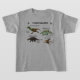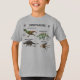 7 dinossauros neste t-shirt fantástico projetaram por um menino idoso de 3 anos. Todos estes dinossauros favoritos incluem imagens e medidas.