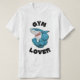 Esta t-shirt apresenta um tubarão de desenho animado com grandes braços musculares e um sorriso dentado. O tubarão está flexionando seus músculos e tem as palavras "Gym Lover" escritas abaixo dele. A t-shirt é certamente um sucesso com ratos-ginásios e amantes de tubarões, eu sou o tubarão que está sempre pronto para esmagar os meus objetivos." "Sou o rei da academia." "Sou um tubarão na academia." "Sou o tubarão que nunca desiste."