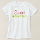 Bebês doces é escrito em círculos geométricos verdes de neon-neon, claros e alegres, vermelhos, azuis, roxos, laranja, rosa e verde. Design original de TamiraZDescartazes.