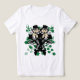 Rua. O Leprechaun do Dia de Patrick tocando uma flauta em um Traje de Retro Vintage Negro enquanto toca seus instrumentos musicais em um Tune Irlandês.