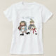 Um menino e uma garota se divertem no inverno construindo bonecos de neve em nossas camisetas de design, camisas de suor, canecas, cartas, sacos de tota de feriado e outros artigos de design de festas de boneco de neve.
