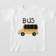 Um texto em estilo de ônibus amarelo e preto que lê BUS em T-shirts, fatos-chave, sacos-tote, chaveiros, cartões, autocolantes e outras roupas de ônibus e presentes.