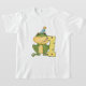 Se você ama sapos, vai adorar nossas t-shirts de Sapo do Partido, seus trajes, bolsas de tote, botões de aniversário e muito mais para o primeiro aniversário do bebê! Possui um sapo verde vestindo um chapéu de festa azul e um grande número 1!