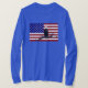 Uma águia careca varreu o céu de sua perca em um galho de árvore; sobreposto a uma bandeira dos Estados Unidos.