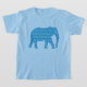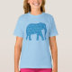 Mídia digital gráfica mista de um elefante - turquesa, azul-índio escuro e flor branca de lótus contra fundo aqua