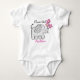 Elefante de gingham de cinzas bonitas com um buquê de flores cor-de-rosa. Personalize o texto como preferido para sua florista.