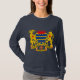 Casaco de braços do Chade. O casaco do Chade foi adotado em 1970. O centro tem um escudo com linhas azuis onduladas e amarelas, com uma ascensão solar sobre ele. O escudo é apoiado por uma cabra e um leão. Abaixo do escudo está uma medalha e um pergaminho com o lema nacional em francês, Unité, Travail, Progrès ("Unidade, Trabalho, Progresso" em inglês). As linhas onduladas no escudo são representativas do lago Chade, e a ascensão solar sobre ele representa um novo começo. A cabra da esquerda representa a parte norte da nação, enquanto a parte sul é representada pelo leão. Perigoso do fundo do escudo é a medalha da Ordem Nacional do Chade.