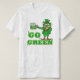 Este divertido duende bebado ficou "verde" para o Dia de São Patrick. Ele está segurando uma grande caneca de cerveja verde e colocando a mão sobre a boca porque ele está se sentindo mal/enjoado e pode estar prestes a vomitar. É o que ele ganha por se envolver em tais shenanigans. As letras "Go Green" são grandes, com algumas pequenas vinhas/ pinceladas saindo delas. Isso daria um presente humorístico para uma festa de Paddy de Ruas, para qualquer um que precise de uma camisa verde de sorte.