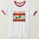 T-shirt nacional da campainha da equipa de futebol de Líbano. Bandeira nacional suja de Líbano com um futebol no fundo & "nos cedros", o apelido da equipe!