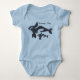 Baleias bonitos, características uma mamã da cor de água e sua natação da vitela. O menino da mamã do estado no texto.