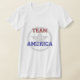 Uma estrela de prata dentro de um anel de prata e as palavras "Team América" em vermelho e no azul feitos em um olhar afligido desvanecido.