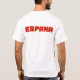Espana de dois lados. Texto em bloco proeminente da palavra Espana, corajosamente exibido no verso da camisa, nas cores espanhola do vermelho e do amarelo. A frente da camisa tem um pequeno símbolo circular da bandeira da Espanha. Mostre seu orgulho espanhol. Vestuário único e legal de Espana.